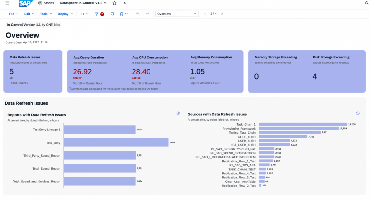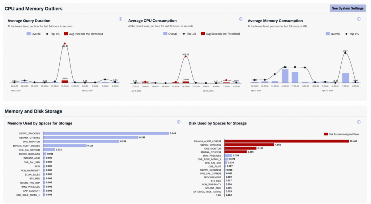 A clear helicopter view of SAP Datasphere system performance, enabling proactive monitoring and reducing operational risk.